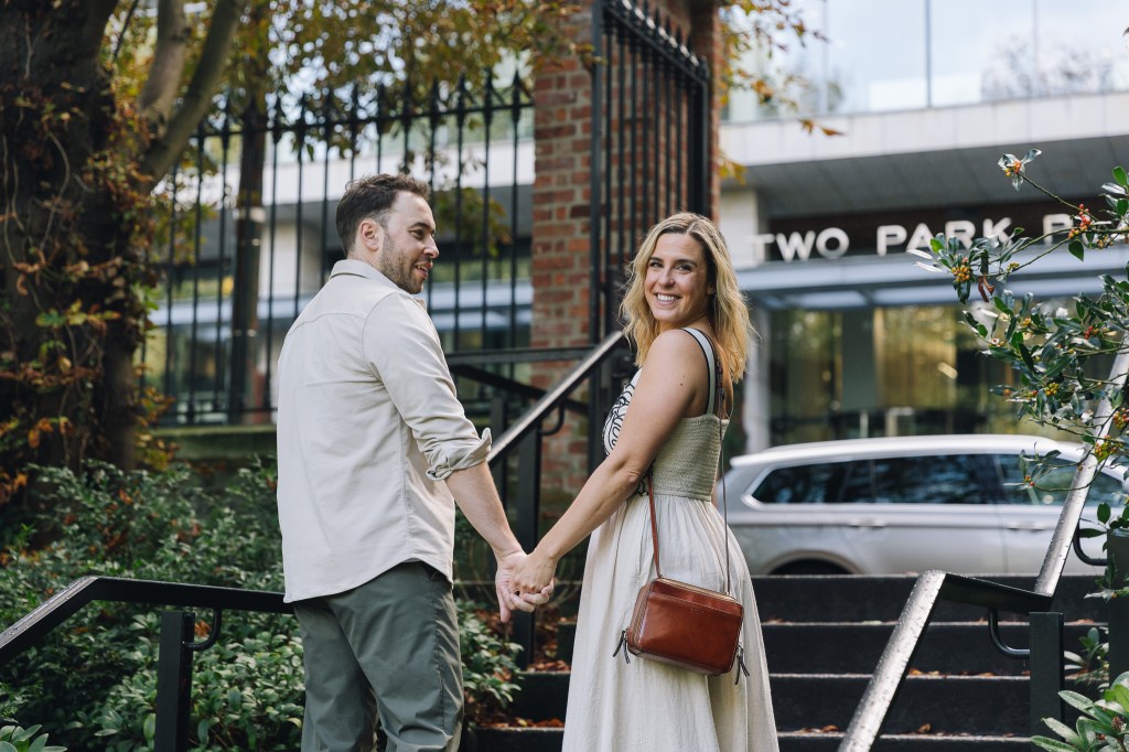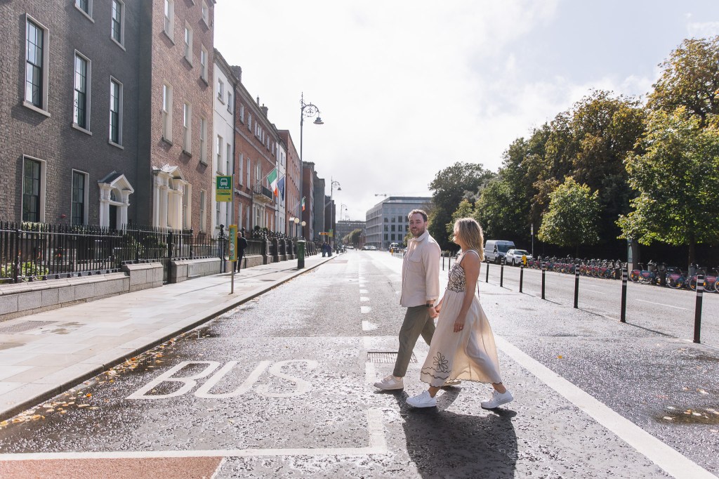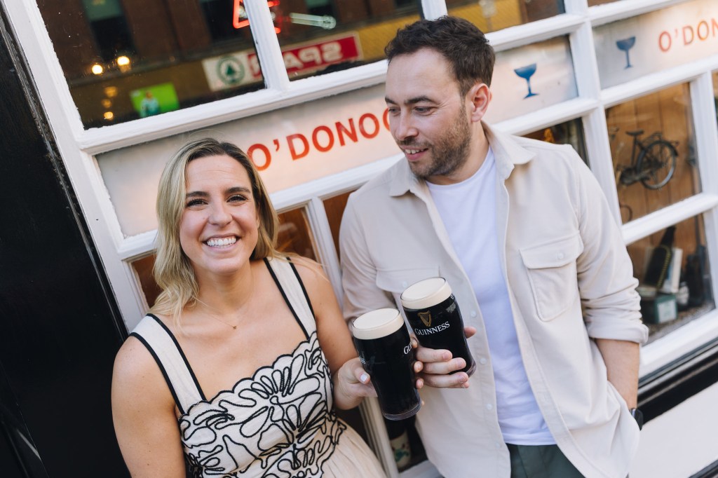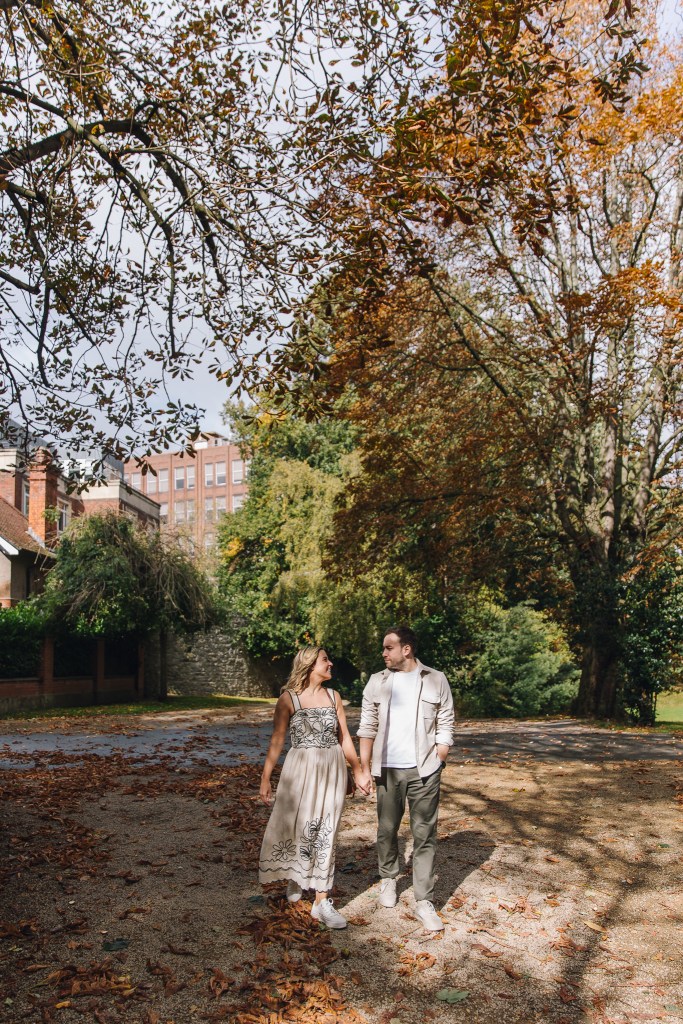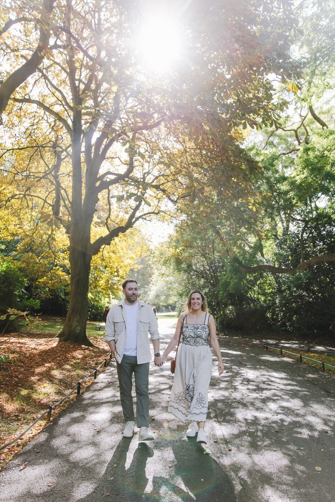 Meghann and Andrew’s Dublin session was pure joy from start to finish — the kind of shoot where you’re basically just hanging out with two people who can’t stop laughing. We wandered through hedge mazes, chased pockets of golden autumn light, and, of course, wrapped it all up with a well-earned pint.
