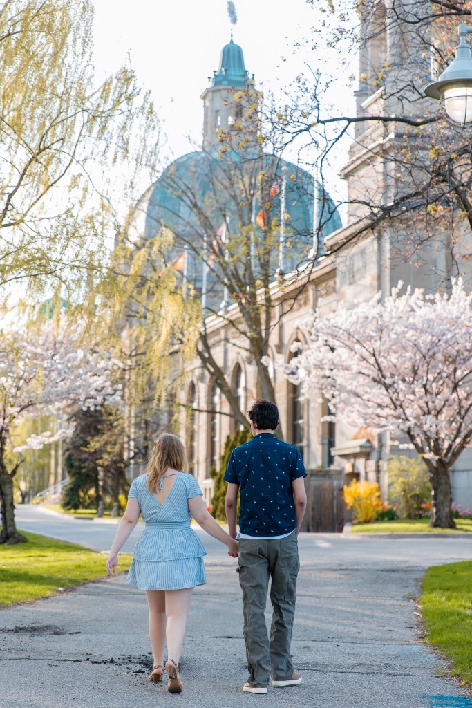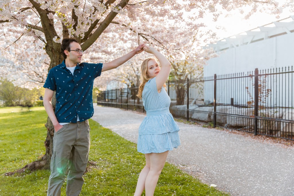 There’s something pretty special about springtime shoots; the soft light, the fresh blooms, and that feeling in the air that something new is beginning. Alex and Sarah’s engagement session had all of that and more. We timed their shoot perfectly with peak cherry blossom season and caught golden hour just right, which meant we were basically wrapped in magic the entire time.